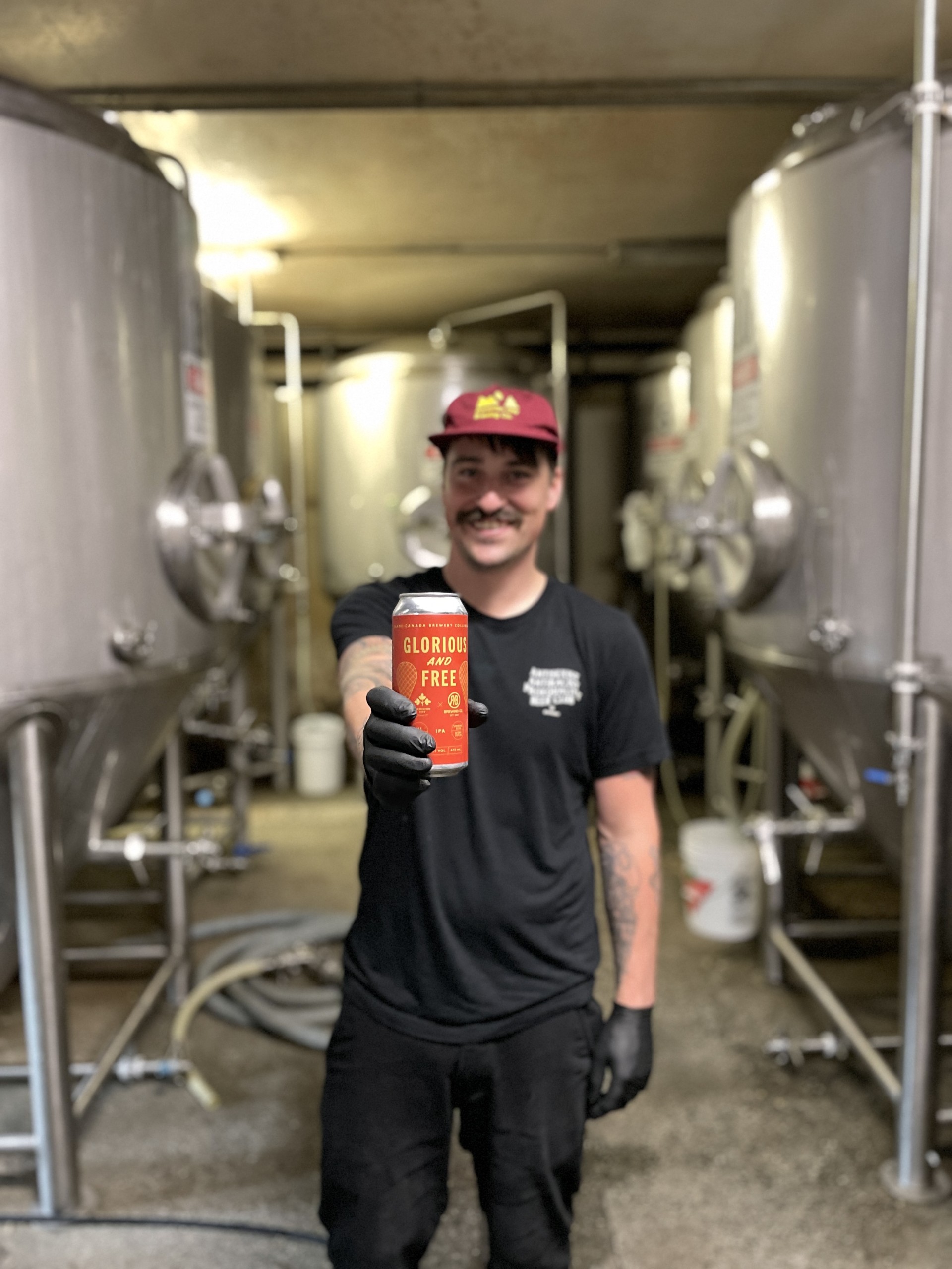 Grant Klippenstein, head brewer for Over Time Beer Works, was going through the brewery’s inventory and swapping out American ingredients for Canadian when he came across the Glorious and Free collab. He says it was a no-brainer to get on board. The brewery already uses mainly Canadian malts, and for this brew, went to their friends at Canada Malt Co. The hops came from Topps Hops in Abbotsford and Houblonniere Lupuline in Quebec.