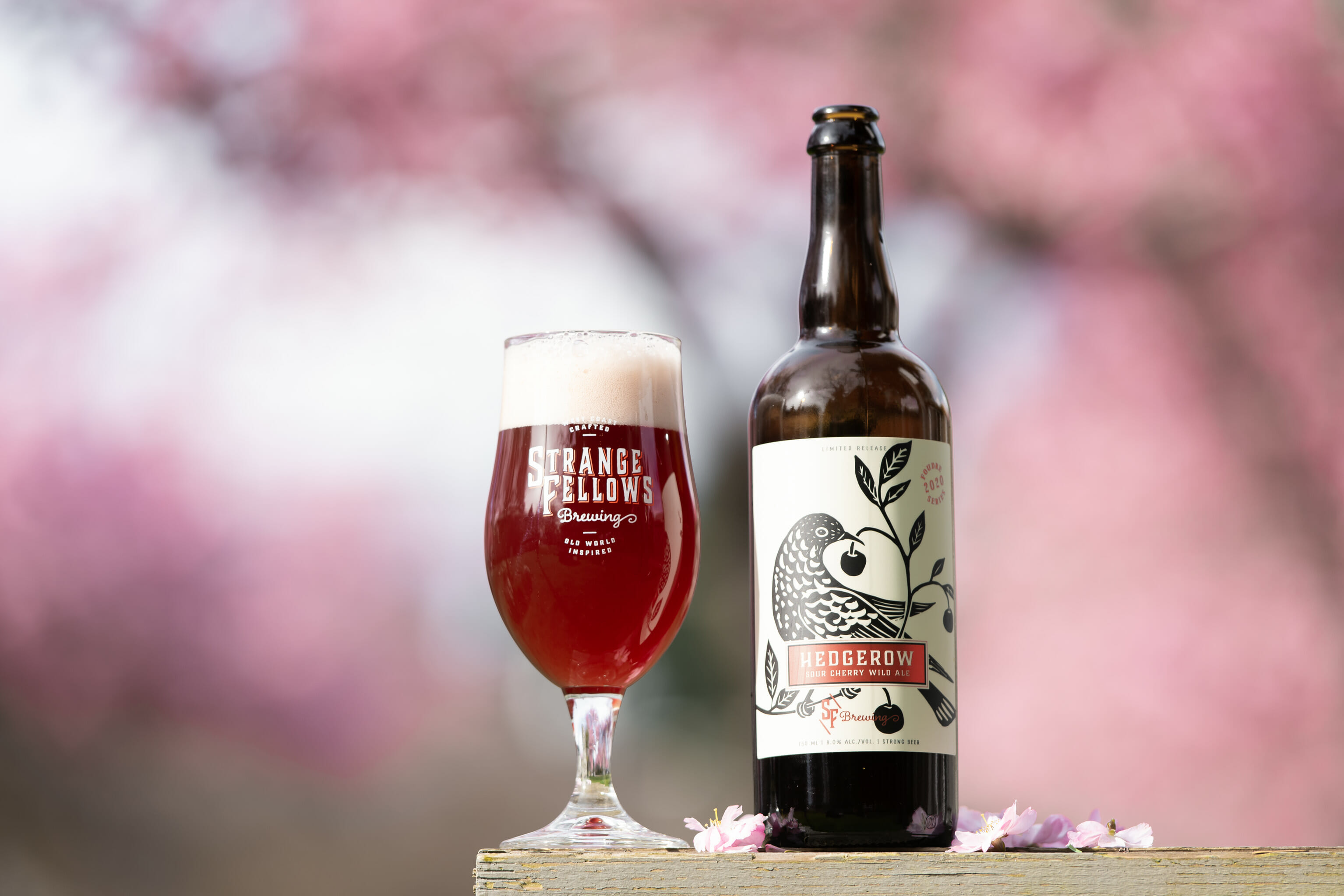 Strange Fellows Brewing just launched a special beer called Hedgerow Sour Cherry Wild Ale. It was brewed with Balaton Cherries and spent over a year in a French oak foudre. The result is a rich, soft and sour beer with strong and concentrated cherry character.
