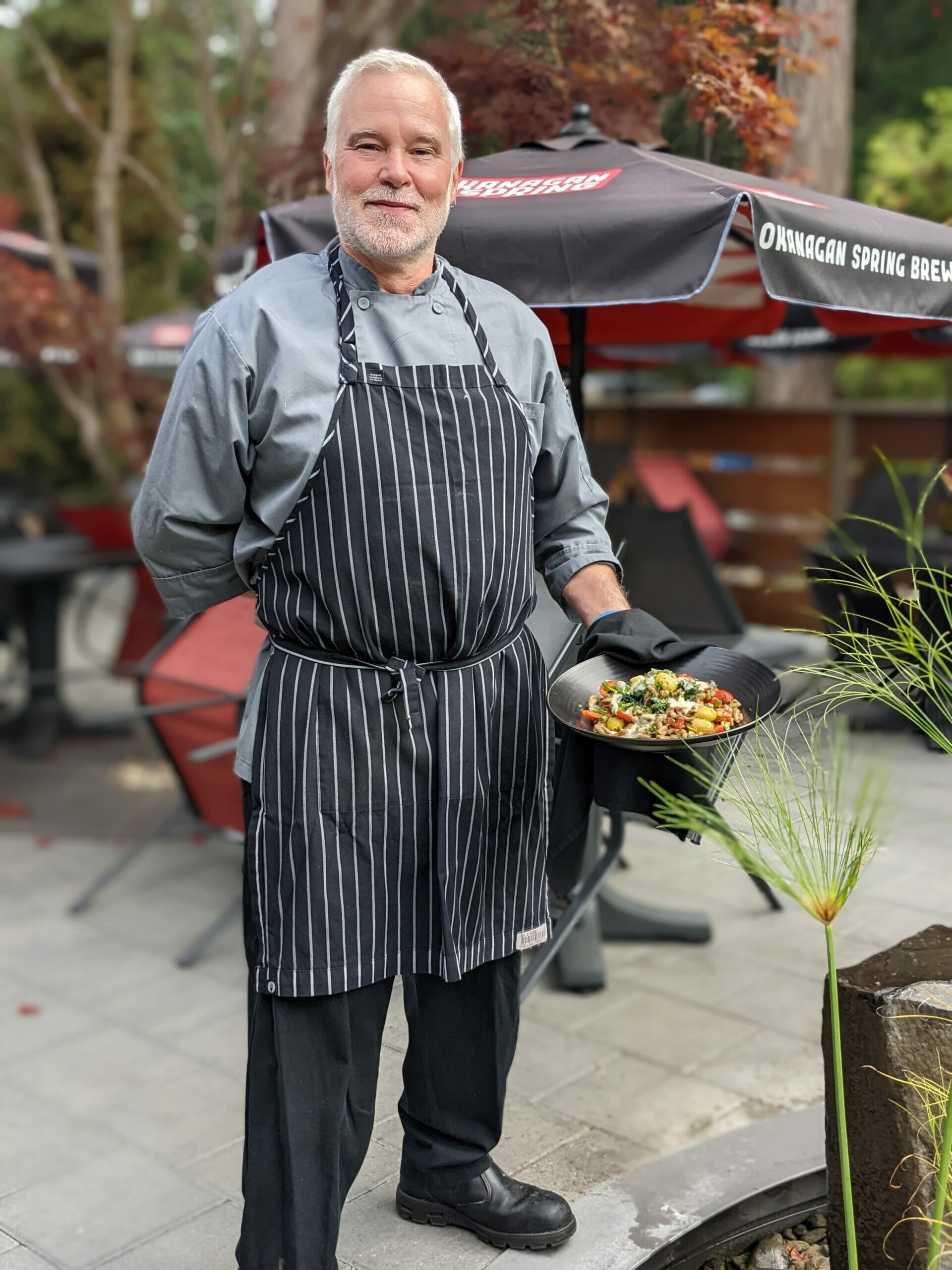 Cedars is a rustic restaurant that’s part of the Tigh-Na-Mara resort, a beloved island getaway that’s been in business for over 70 years. Chef Eric Edwards has been at the restaurant since its inception over 30 years ago. “They basically built the restaurant around me,” Edwards said with a hearty laugh. The menu is classic, comfort, and Canadian with hearty dishes like fish & chips, bacon-wrapped meatloaf, and salmon wellington. They also have a pizza oven and make some tasty classic pizza that is popular on their take-out menu. The stand-out dish is the Gemelli Pasta. This decadent pasta bowl uses local Cowichan Valley Pasta, a Vancouver Island company that makes gourmet dried pastas using locally farmed grains. The dish includes plenty of garlic, heirloom tomatoes, green onions, peppers, and spinach topped with some olive oil and cheese.