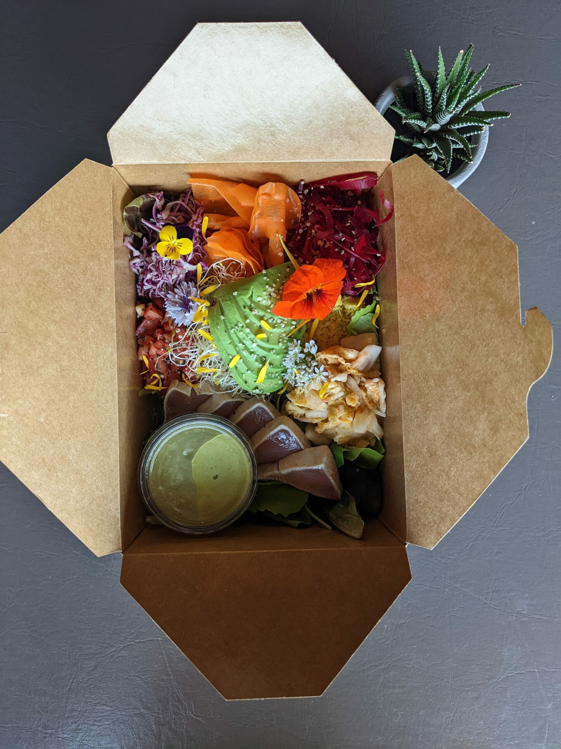 Getting excited about healthy food can be hard but luckily chef and owner James Hannah at Realm is changing that. Most known for their tasty bowls, tacos, and their daily “donut of the moment,” the list of local island farms, butchers, bakers, and coffee makers that Hannah works with is long. Burnt Honey ice cream from Nanaimo, Tofino Coffee Roasters as their drip, Vancouver Island Hot Sauce on the tables, and Loveshack Libations beer on the drink menu. The West Coast Bowl is full of island-grown goodness including carrots, beets, sprouts, kale and locally sourced albacore tuna. Definitely order it with their house-made kimchi! Other dishes worth mentioning are the Ramen, made with their homemade bone broth, the grilled fish tacos, and their daily donut.