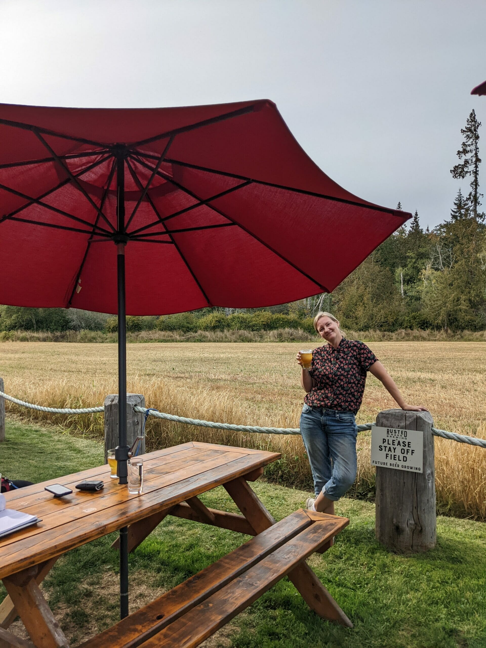 Flash forward 10 years and a lot has changed. Originally, they had planted red fife wheat, vegetables and housed some livestock, all used in their popular restaurant called Rusted Rake. However, in 2019 they were forced to change their business plan due to complicated ALR (Agricultural Land Reserve) rules, hence Rusted Rake Brewery was conceived. The couple reached out to the family for help and Jodie’s sister Jennifer Nichols and husband Craig Nichols jumped on board to create a truly unique gastro-brewery experience. The wheat and vegetables were replaced with 5 acres of barley, the base for all of their beer brewed by David Woodward, a highly experienced brewmaster with over 20 years in the business and plenty of awards under his belt. The use of their own barley, malted less than a kilometer away, allows them to truly control the taste and quality of the main ingredient in their product; a very unique opportunity for a brewery. Not to mention the joy of being able to sit on a patio and overlook a gorgeous field of golden grains that inevitably end up in your glass. Woodward has created six core beers in the line-up: a toasty pale ale, a resiny and tropical IPA, a Mexican-style lager, a luscious coffee stout using locally roasted coffee, a hazy pale ale utilizing their own grown oats, a Belgian witbier, and a spruce tip IPA teeming with locally foraged spruce tips.