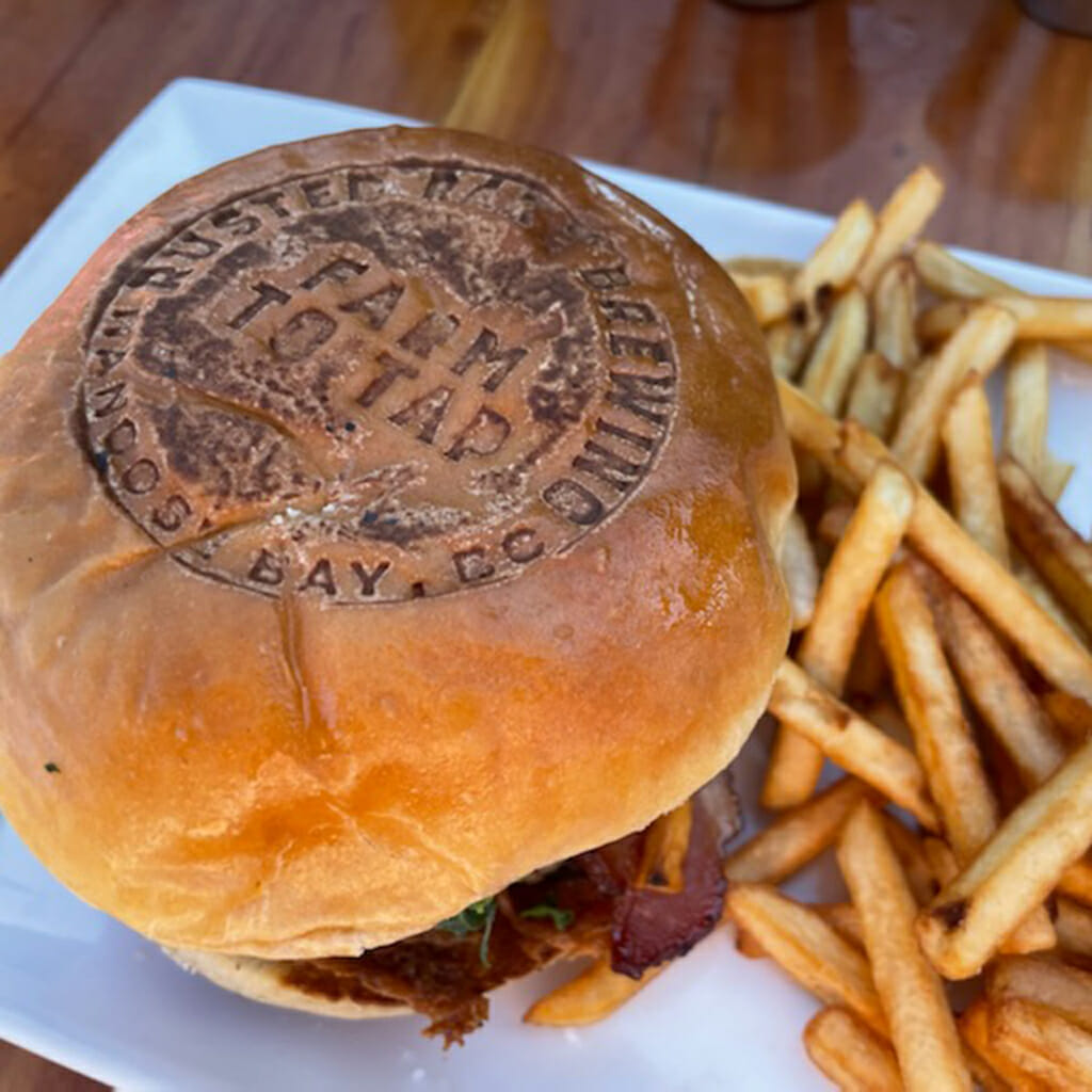 In keeping with their restaurant roots, chef Bryce Cowan was kept on to create dishes to accompany the beer menu. Like their previous project, the food is west-coast, unpretentious, and a celebration of the bounty of the island. The Brewhouse Burger is incredible, served with bacon, cheese, an onion/red pepper/jalapeno mix, and their house-made blueberry ketchup with their own grown blueberries. The Smoked Brisket Plate is comfort food at its best with a melt-in-your-mouth slow smoked brisket served with Yorkshire pudding, black garlic demi-glace, spaetzle, and prepared vegetables. Garlic is another crop grown on the farm. The chicken and pickles dish is topped with a dreamy rosemary maple sauce and their homemade pickles. They also serve a Sunday brunch and use a local bakery for their desserts. The space is rustic and welcoming, a comfortable gathering place for locals and travellers looking to experience a little taste of Nanoose Bay.