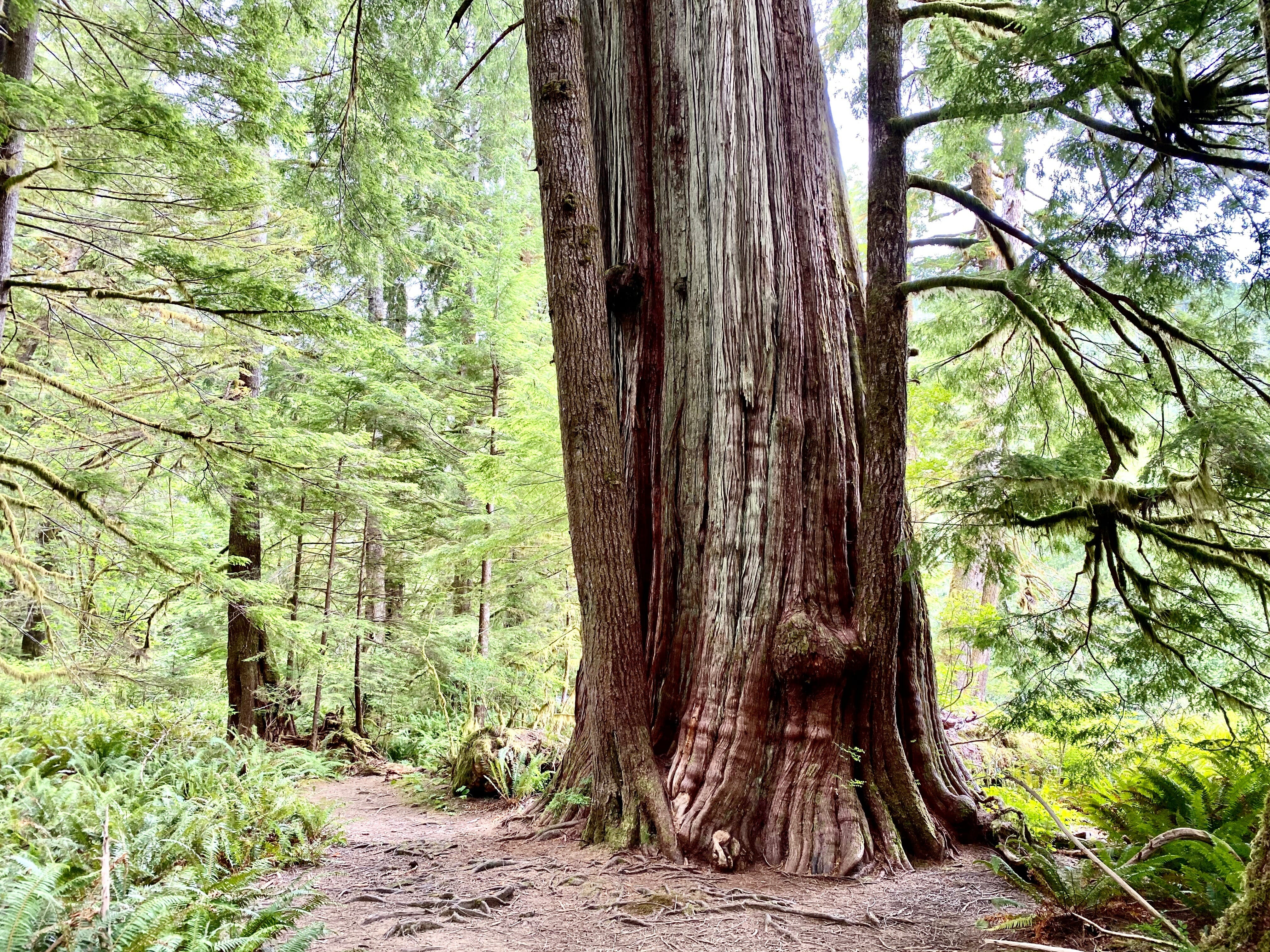 The pizza was just as outstanding as it had been built up to be. We paid up, picked up some cans to go, and headed west along Highway 4. We’d been briefly disappointed on our way into Port Alberni to discover that Cathedral Grove, along with the rest of Macmillan Provincial Park, remained off-limits to visitors (for good reason, it turns out). We still wanted to enjoy a short walk in the woods, though, so 60 kilometres west of Port Alberni, we stopped at the Canoe Creek Recreation Site and set off down the Giant Cedar Trail. Ten minutes later, we stood at the foot of one of the largest cedar trees any of us had ever seen. And, quite unlike any stop we’d ever made at Cathedral Grove, we were alone. After a quick dip in the crystal-clear Kennedy River, we got back in the car and wound our way to our destination: Tofino.